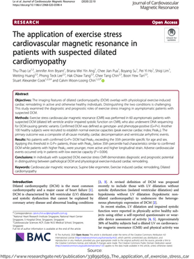 Le TT, Bryant JA, Ang BW, Pua CJ, Su B, Ho PY, Lim S, Huang W, Lee PT, Tang HC, Chin CT. The application of exercise stress cardiovascular magnetic resonance in patients with suspected dilated cardiomyopathy. Journal of Cardiovascular Magnetic Resonance. 2020 Dec 1;22(1):10.