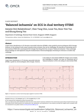 Balakrishnan ID, Chin CY, Teo L, Tan BY, Yeo KK. ‘Balanced ischaemia’on ECG in dual territory STEMI. Oxford medical case reports. 2018 Aug;2018(8):omy043.