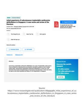 Lim TS, Tan BY, Ho KL, Lim CY, Teo WS, Ching CK. Initial experience of subcutaneous implantable cardioverter defibrillators in Singapore: a case series and review of the literature. Singapore medical journal. 2015 Oct;56(10):580.